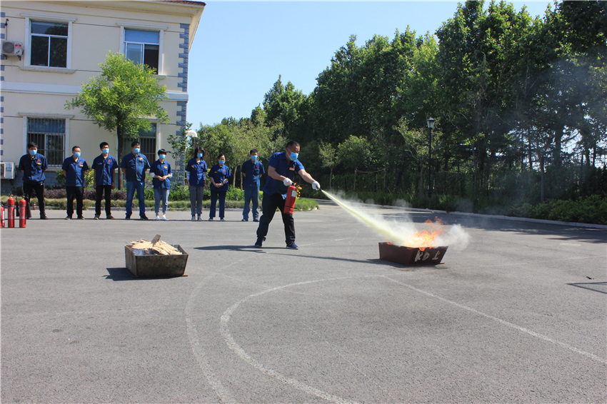 本次應急演練在臨沂水務廠區南廣場開闊地進行,臨沂公司副廠長趙鵬飛首先對安全防范常識、消防安全應急知識等方面進行了詳細講解,運營部長何立濤現場進行了滅火器使用方法的介紹和示范;隨后,根據應急預案流程,全體參訓員工逐個進行了模擬訓練。